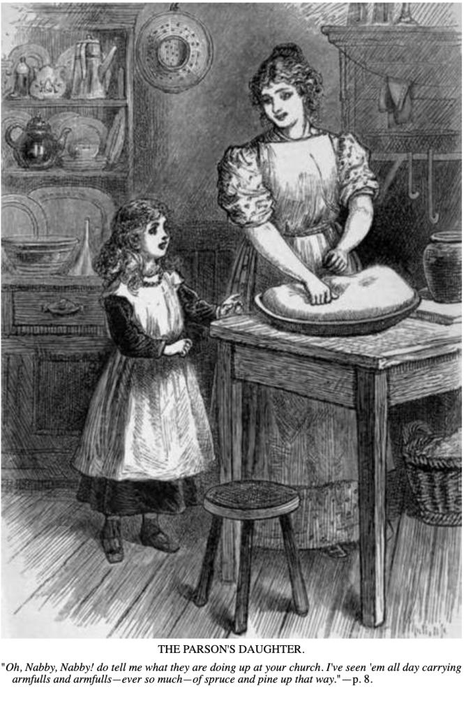 “Well, you see,” said Nabby, “to-morrow’s Christmas; and they’ve been dressin’ the church with ground pine and spruce boughs, and made it just as beautiful as can be, and they’re goin’ to have a great gold star over the chancel. General Lewis sent clear to Boston to get the things to make it of, and Miss Ida Lewis she made it; and to-night they’re going to ‘luminate. They put a candle in every single pane of glass in that ‘air church, and it’ll be all just as light as day. When they get ’em all lighted up you can see that ‘air church clear down to North Poganuc.”