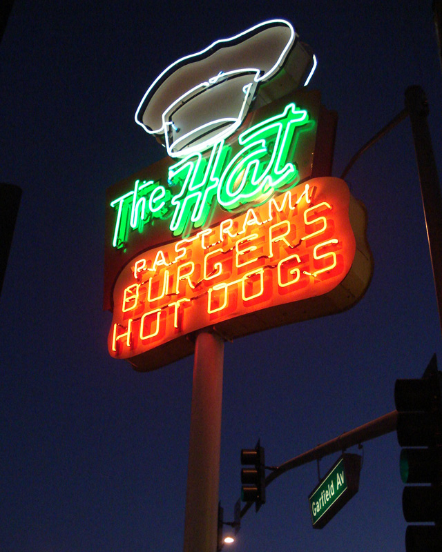 I’m trying to be completely open about my eating habit, an unfortunate addiction that has drawn considerable derision and a fair amount of entirely justifiable condemnation from some of my anonymous online critics. Yesterday, for example — and I’ve resolved to make no attempt to conceal the sordid reality of my compulsion to consume food (and to do it pretty much every day) — I took my wife and our visiting friend to The Hat, on Rosemead Boulevard in Temple City, for lunch. While there, openly and in full view of others, I ate a pastrami dip sandwich. I’ve been eating their pastrami dip sandwiches since childhood, although that tradition actually began at the location in Alhambra, on Valley Boulevard. Only later did my brother and I begin occasionally to visit the location in Temple City where, quite flagrantly, we would indulge our reprehensible appetite for lunches composed of food. As justification, I can only offer in my defense that I really like The Hat’s pastrami dip sandwiches, and that eating them once or twice a year is a way re-connecting, in a slight way, with my memories of my now-departed parents and only sibling.