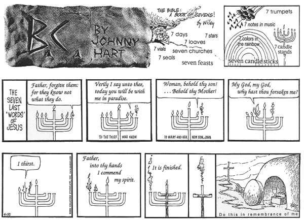 In fact, in 2001, the Jewish Anti-defamation league chastised him for his strip that showed a seven-branch menorah. Each panel featured one of the Last Seven Words of Jesus. The cartoon concludes with the menorah transformed into a cross.