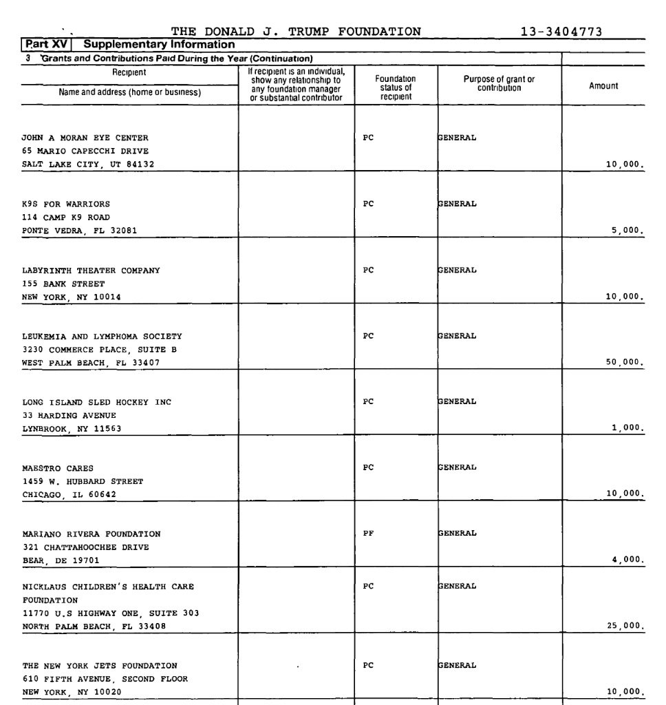 Here’s another: the Trump Foundation gave $10K to the New York Jets Foundation.
