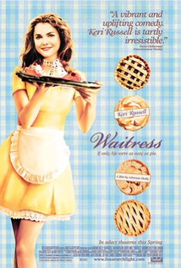 Waitress”, starring Keri Russell (Felicity) as Jenna, was written and directed by Adrienne Shelly (who also has a role as a co-waitress). It tells the story of a young woman, married to a classic red neck named Earl (Jeremy Sisto), who discovers she is pregnant. She squirrels money away to make her escape but gets into an affair with her sympathetic OB/GYN Dr Pomatter (Nathan Fillion, now on Desperate Housewives) and her husband catches her when she does try to leave. Although she will have the baby, she doesn’t have to like it. Her co-waitresses give her a diary and she starts to write to her baby. Meanwhile, a grumpy customer, who owns the pie roadside restaurant she works at, takes a liking to Jenna.