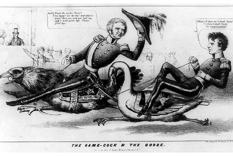 14—"We Polked you in '44, We shall Pierce you in '52": Franklin Pierce's winning slogan in 1852 may raise eyebrows today, but it worked at the time. '44 was a reference to the presidency of fellow Democrat James K. Polk.